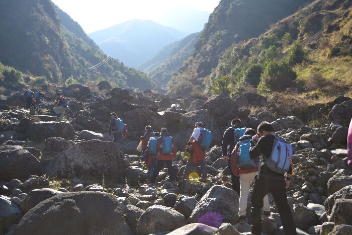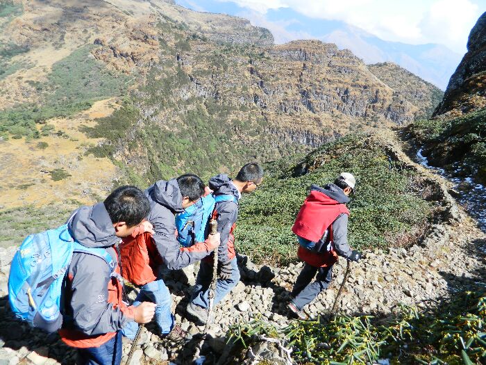 山路非常的陡峭,危險,大家結(jié)伴同行